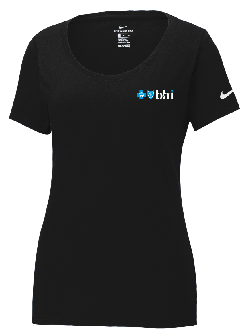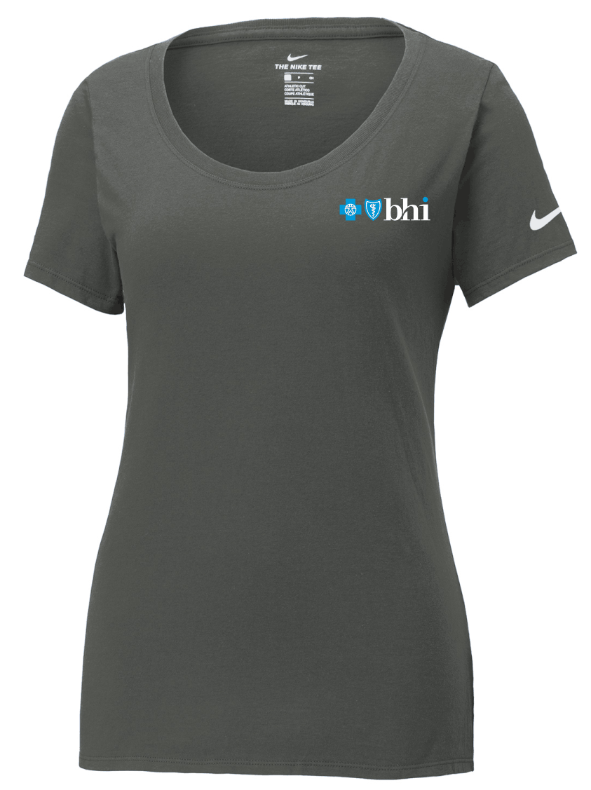 This Nike performance tee features sweat-wicking fabric to help keep you dry and comfortable. Durable rib knit scoop neck. Heat transfer label for tag-free comfort. Double-needle stitching throughout. Contrast heat transfer Swoosh design trademark on left sleeve. Made of 4.7-ounce, 60/40 cotton/poly Dri-FIT fabric.