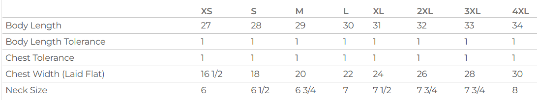 Unisex sizing