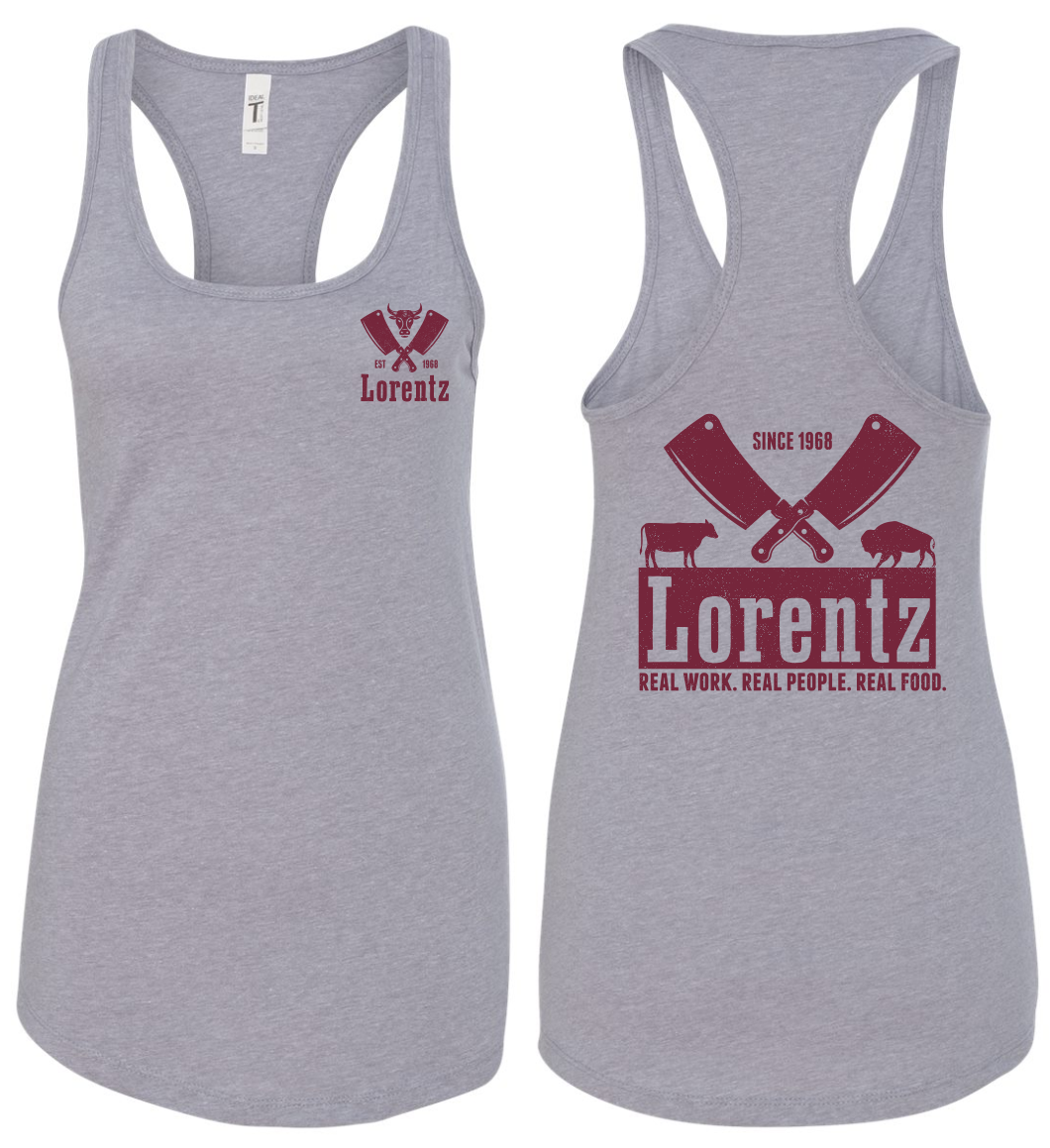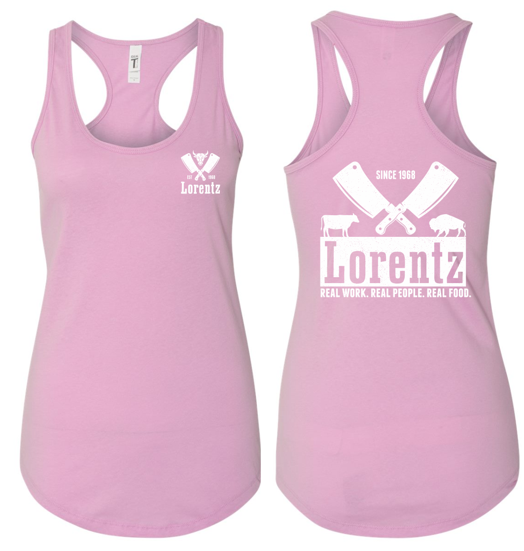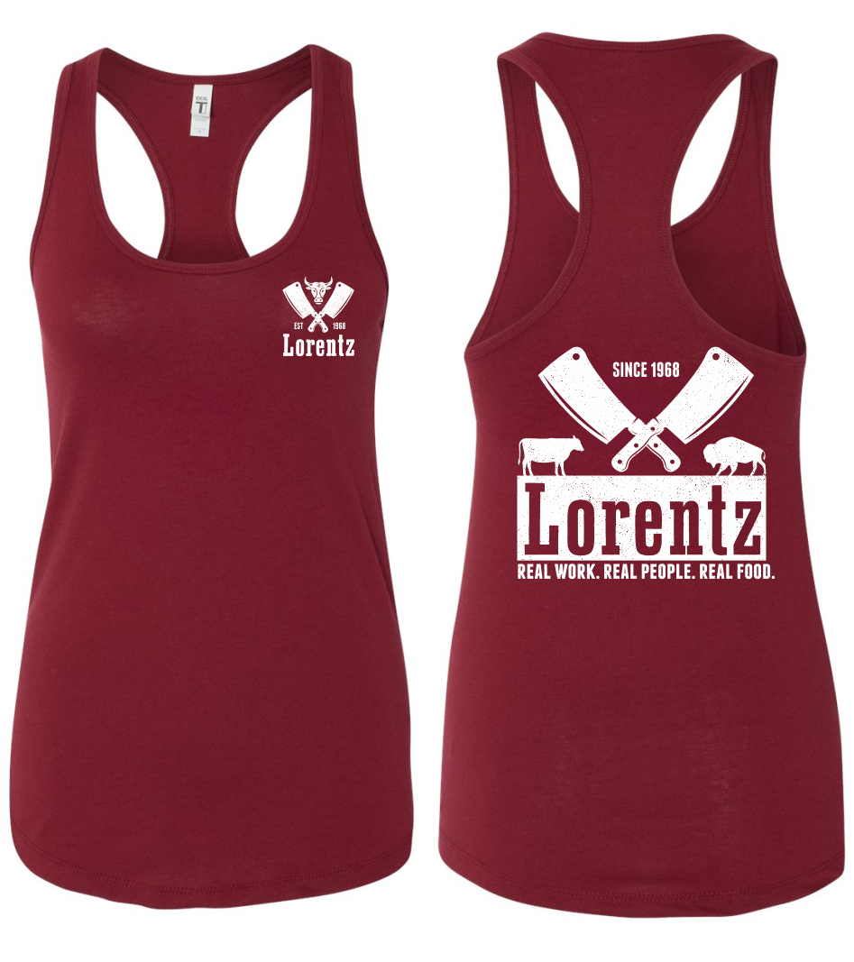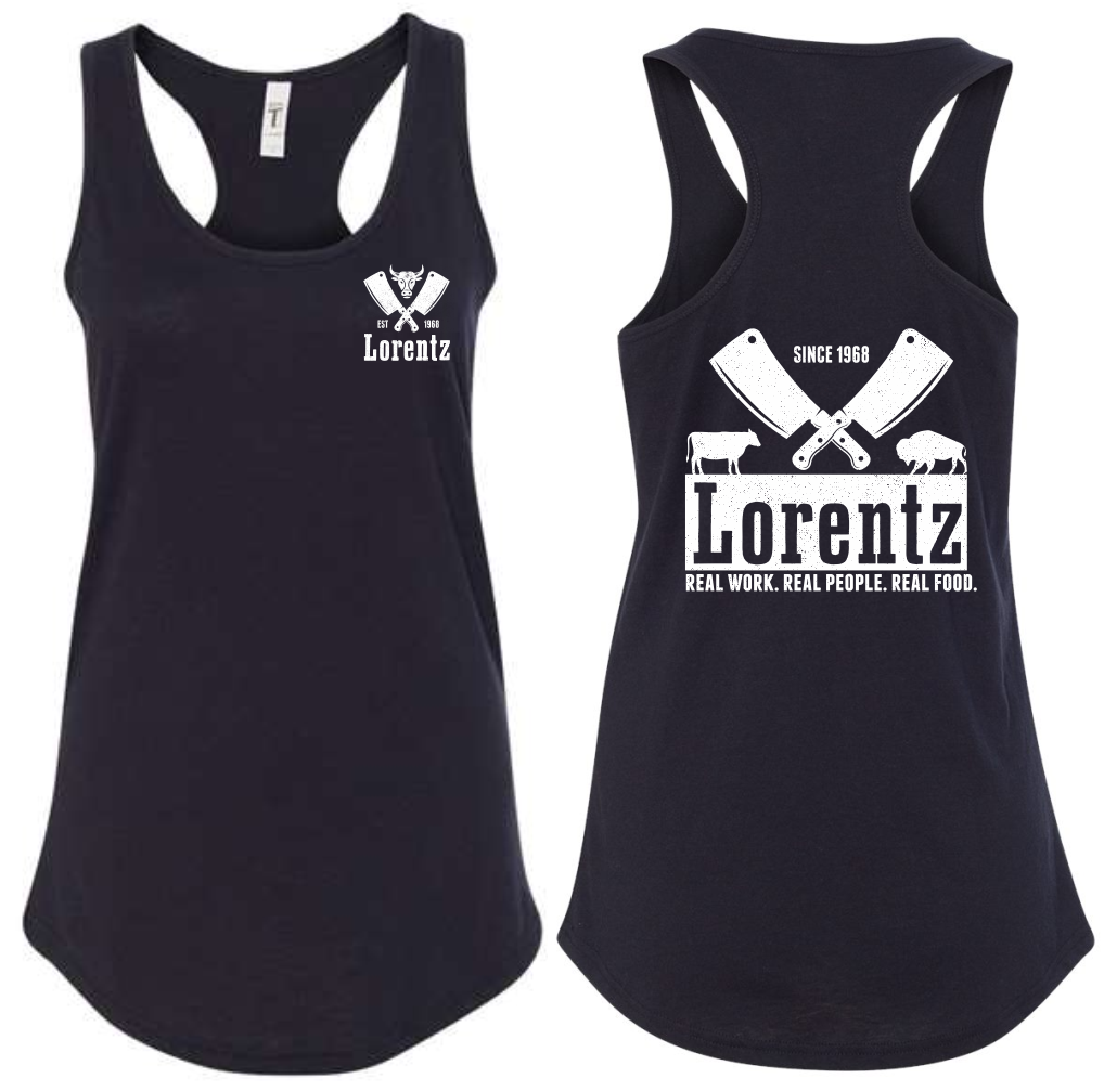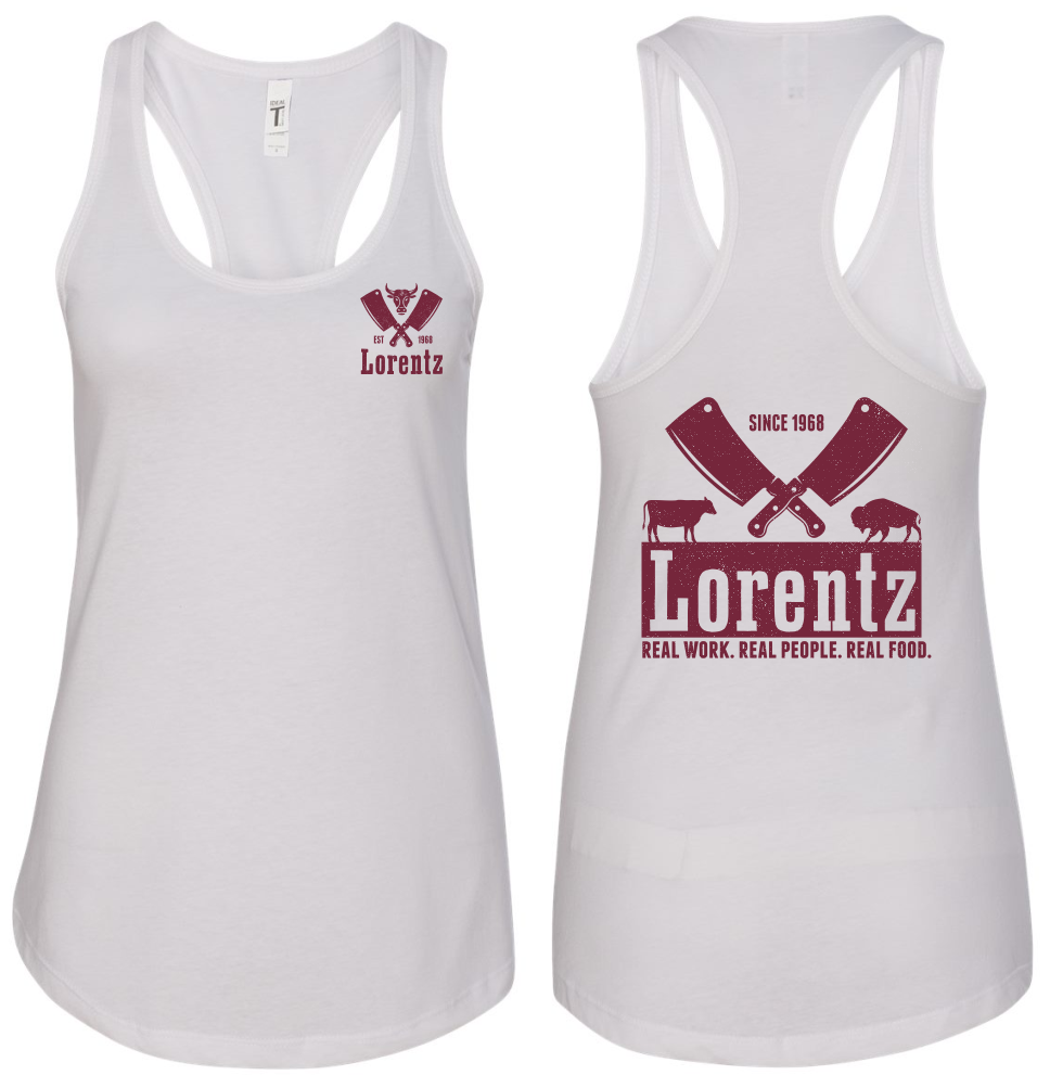 Lorentz Meats Women’s Screen Printed Next Level Ideal Racerback Tank