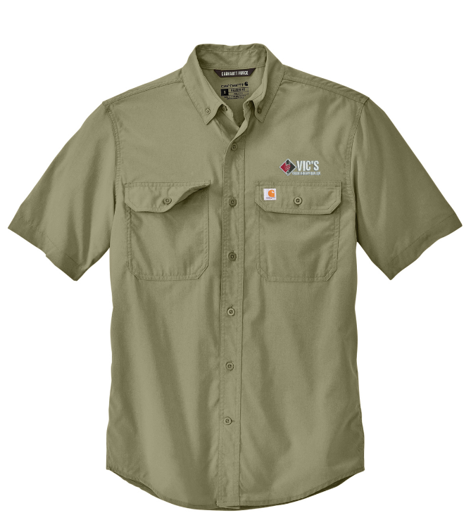 - Carhartt label sewn on left chest pocket