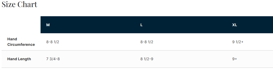 - X-Large: 9.5+-inch hand circumference