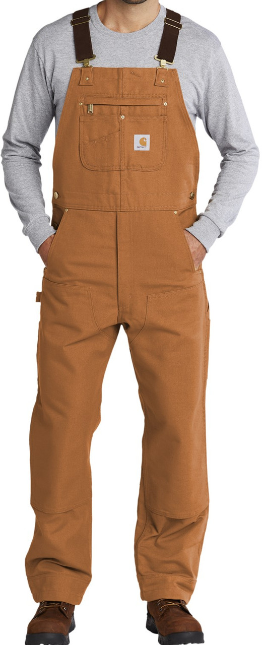 - Carhartt label sewn on bib pocket