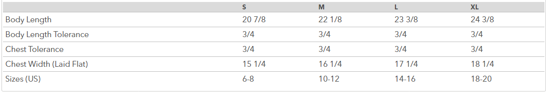 YOUTH SIZE CHART