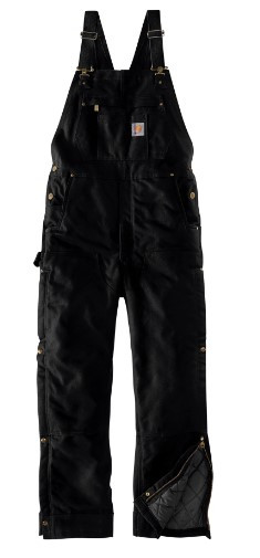 - Carhartt label sewn on bib pocket